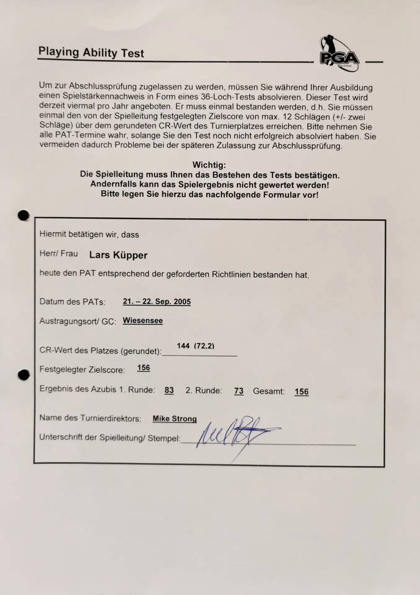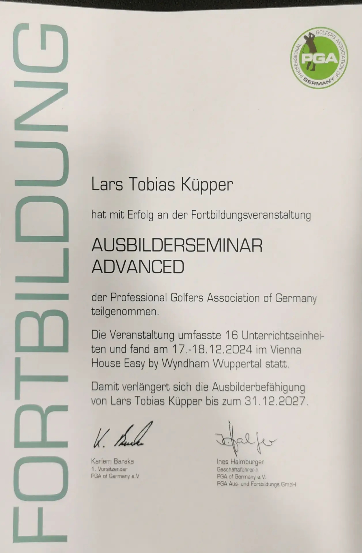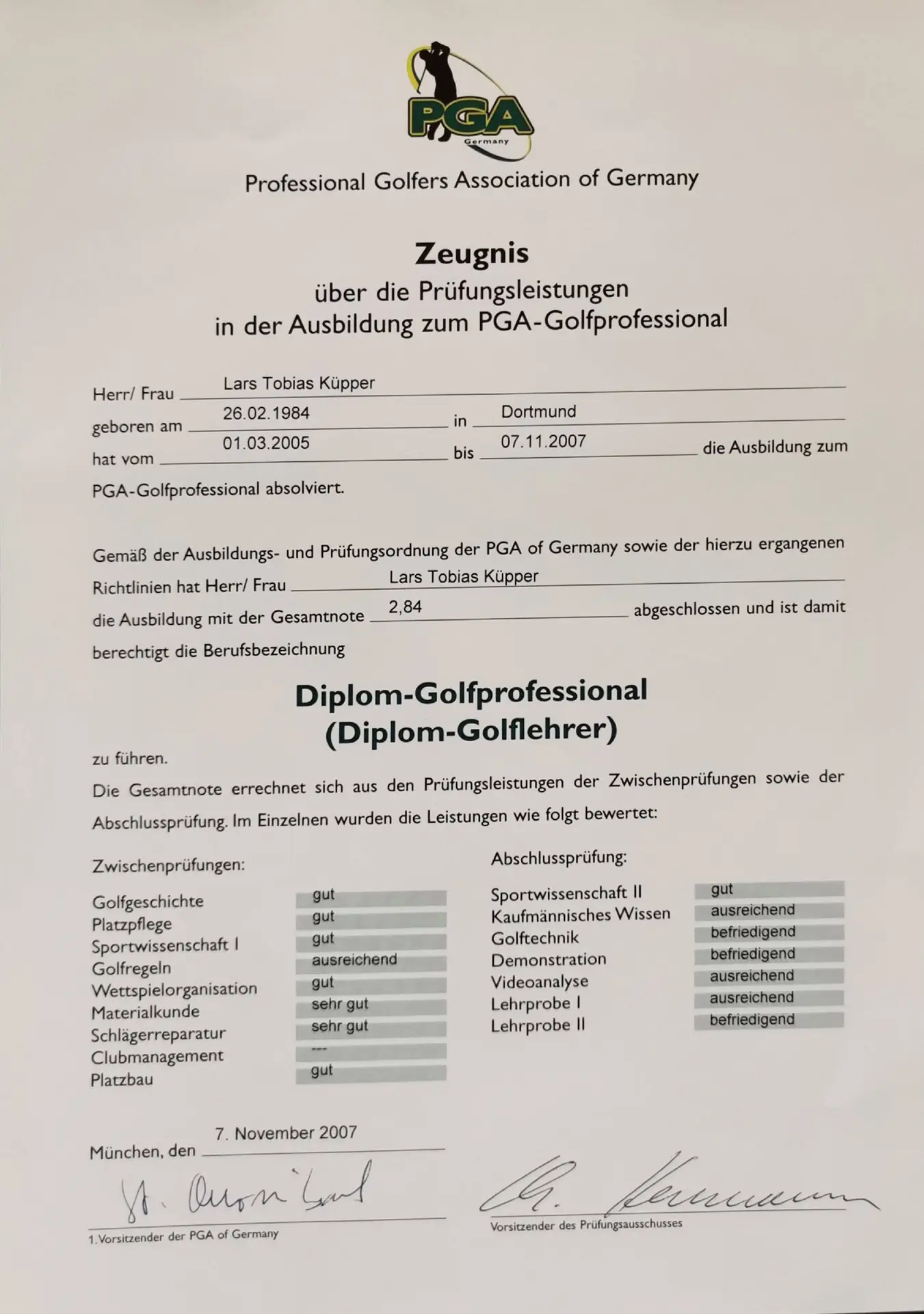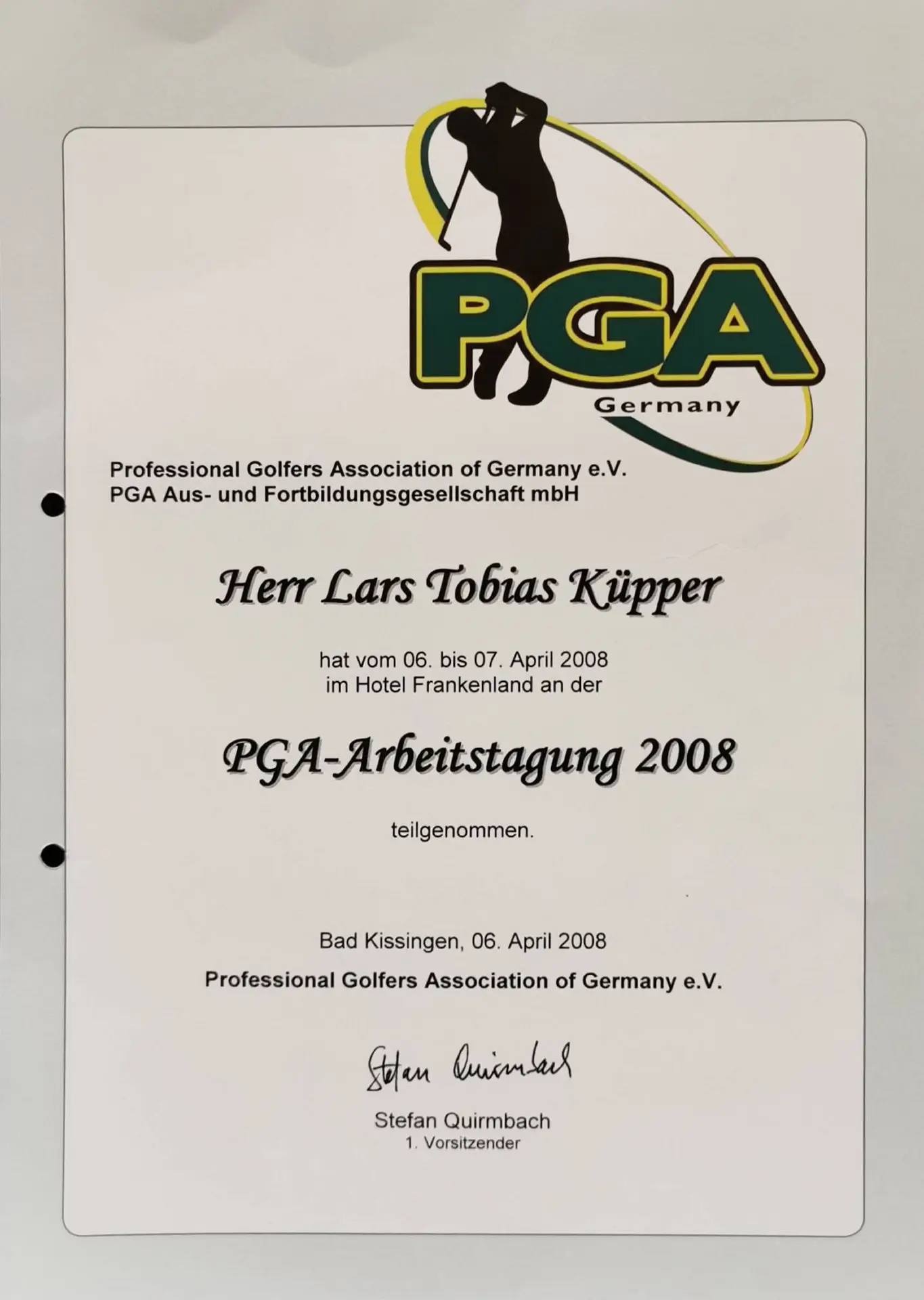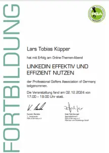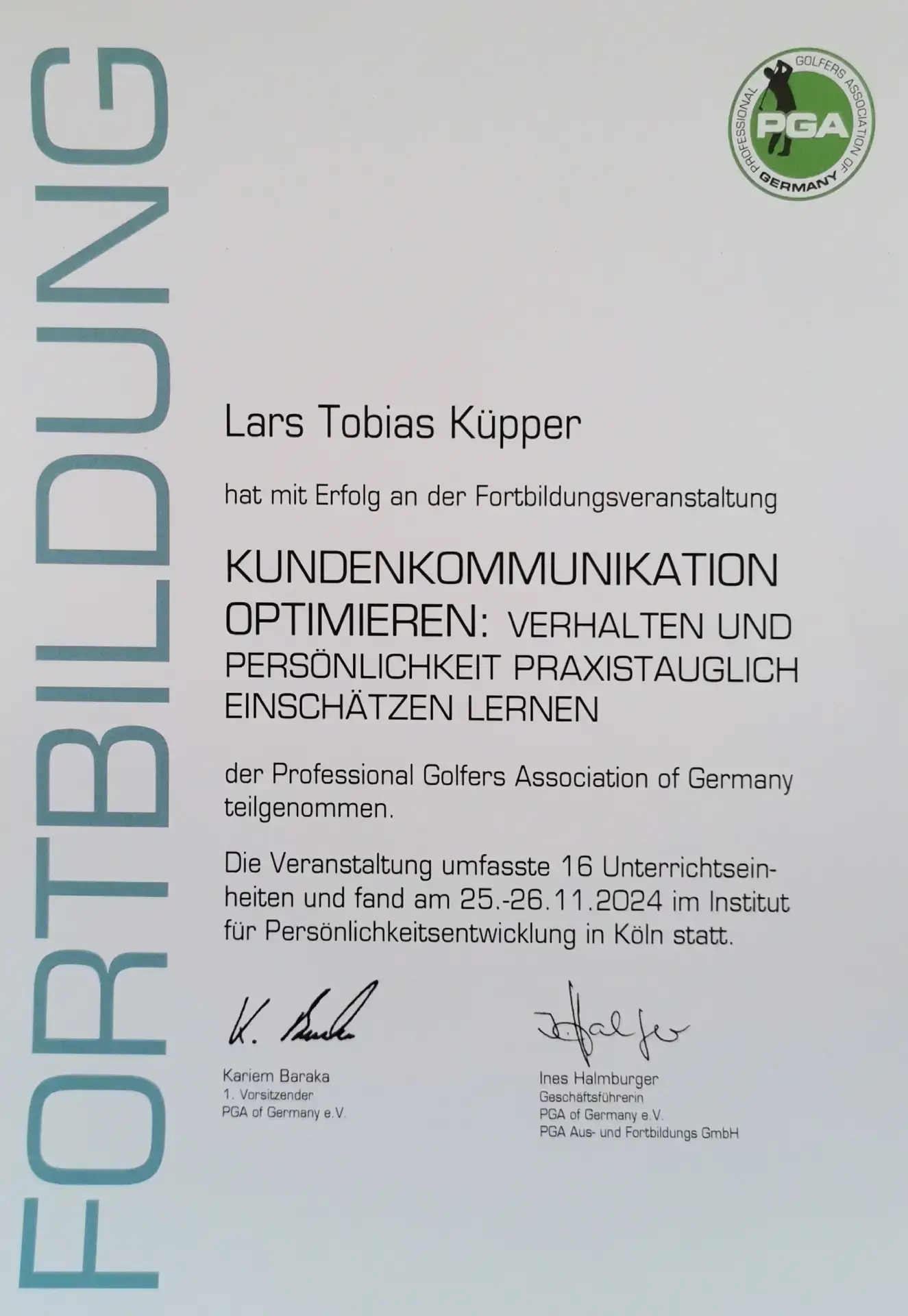 Grazie alla qualifica di istruttore PGA, Lars trasmette le sue conoscenze ai futuri professionisti del golf. Inoltre, ha completato numerosi corsi di formazione presso la PGA tedesca e italiana e ha ottenuto la certificazione in moderne tecnologie di analisi, tra cui TrackMan University, Flightscope e K-Vest.