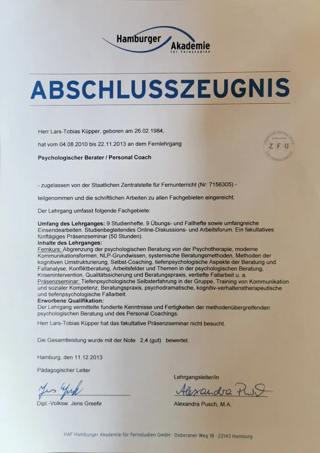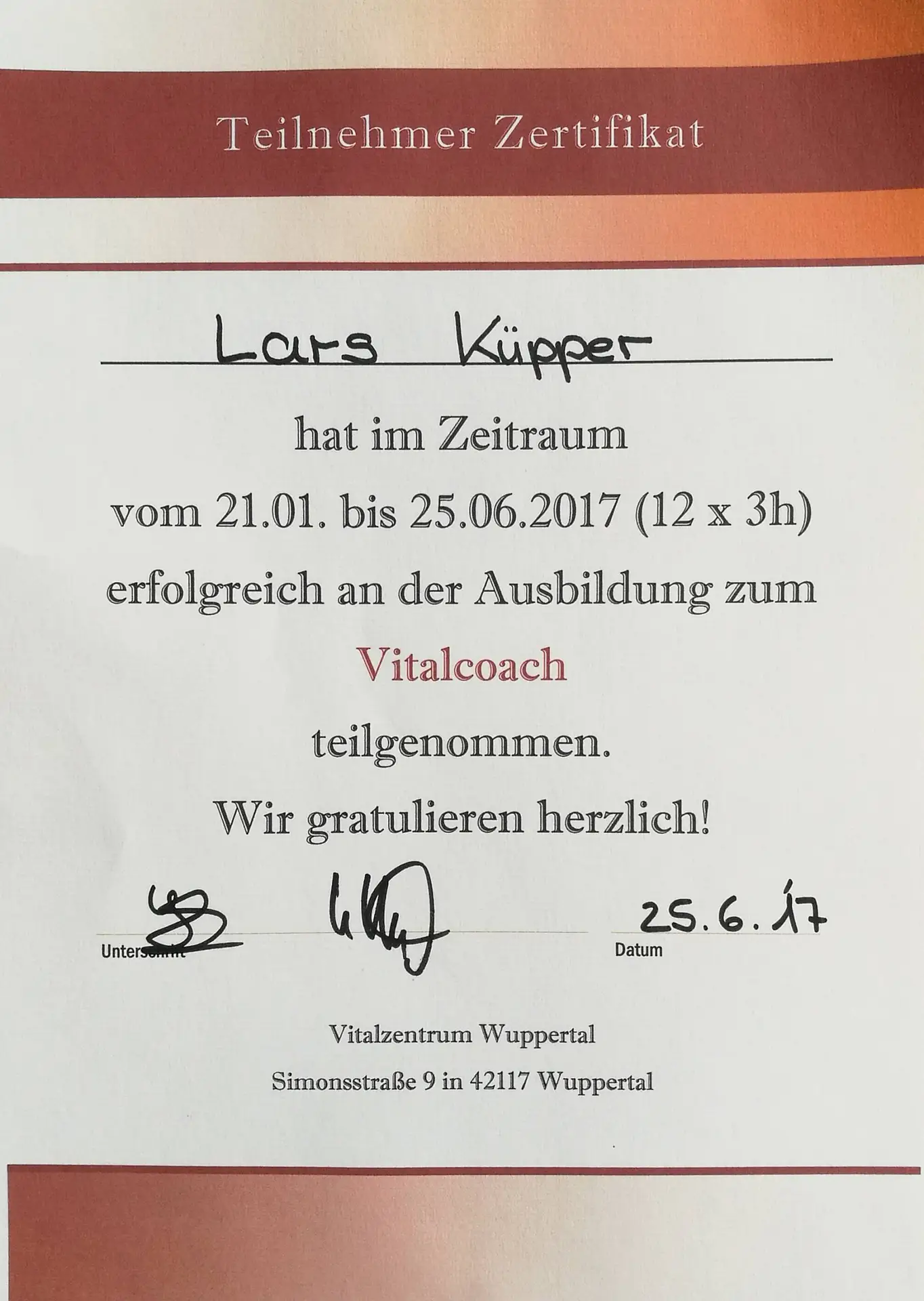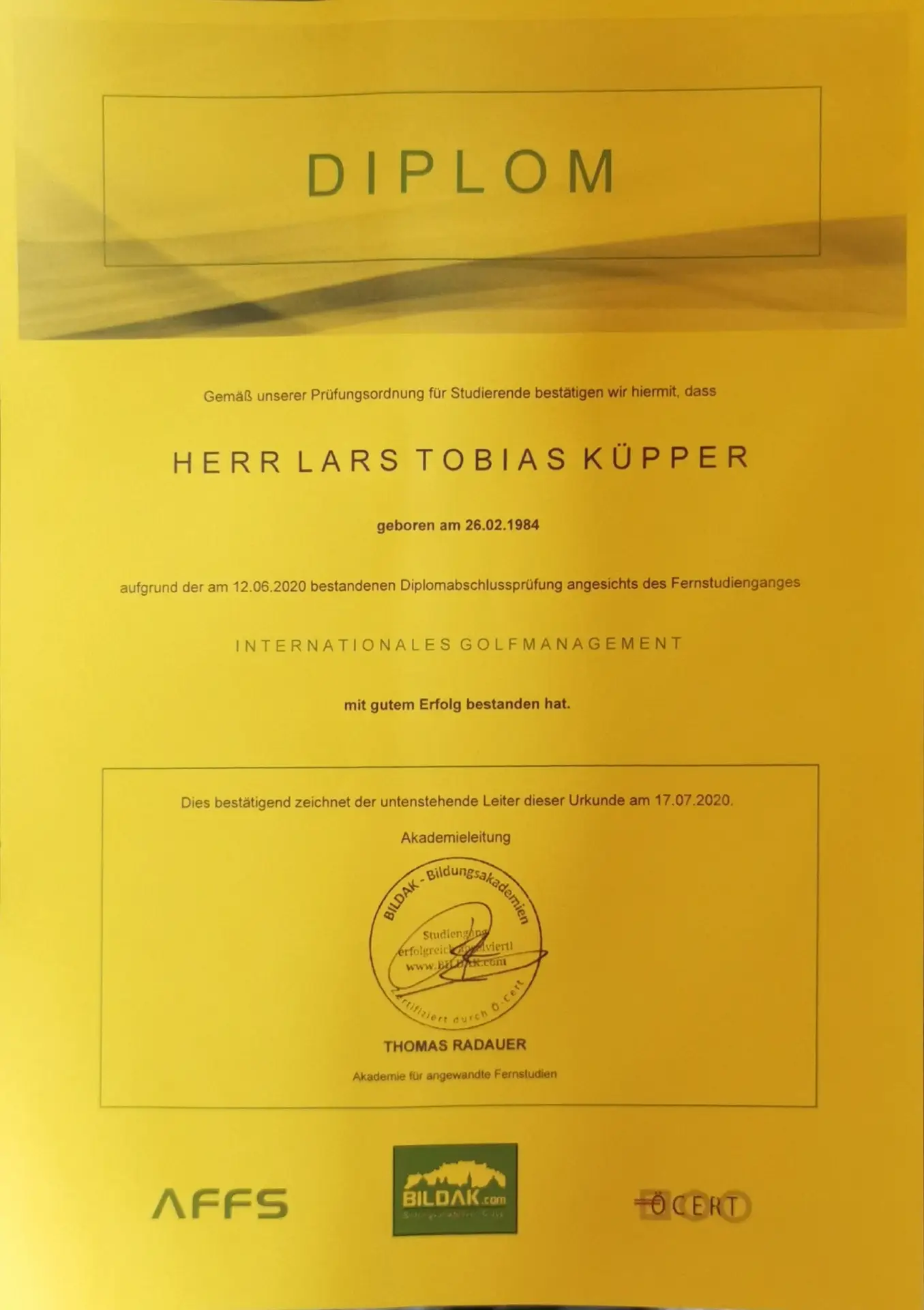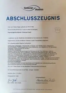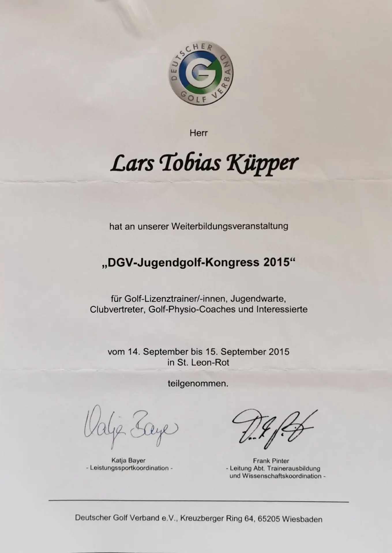 Ha conseguito la qualifica di consulente psicologico presso l'Accademia di Amburgo e ha approfondito le sue conoscenze nel campo della biomeccanica del golf come professionista a Pforzheim. Inoltre, ha continuato la sua formazione come coach del benessere a Wuppertal.